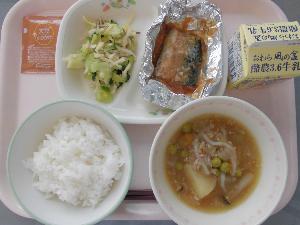 ご飯・牛乳・さばの銀紙焼き・はりはり漬け・じゃがいものそぼろ煮・大豆ふりかけ