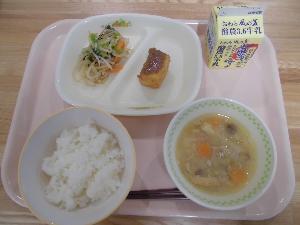 ご飯・牛乳・ふくらぎの梅みそかけ・五目大豆・みぞれ汁・みかん