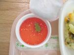 コッペパン・牛乳・ショットブラール(ミートボール)・ピッティパンナ(角切り野菜の炒めもの)・アートソッパ(豆のスープ)・りんごジャム