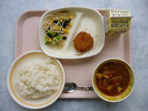麦ご飯、牛乳、メンチカツ、海藻サラダ、ポークカレー