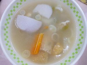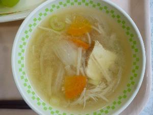 今日の給食は、お月見にちなんで、里芋のみそ汁やお月見団子です。