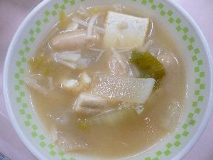 ご飯、牛乳、がんもの含め煮、ごまびたし、豚汁