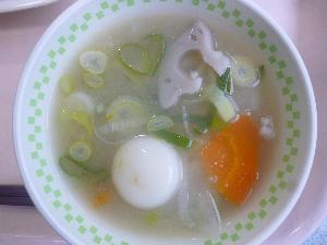 昔から根菜が多く取れていたため、けんちん汁がよく食べられていました。そばをつけて食べるようになり、【つけけんちん】として親しまれていたそうです。今日は、けんちん汁にうどんを入れて食べる【けんちんうどん汁】です。