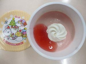 クリスマスライス、牛乳、卵巻きウインナー、カラフルサラダ、ABCスープ、いちごプリン