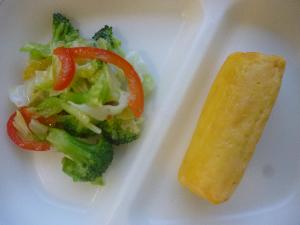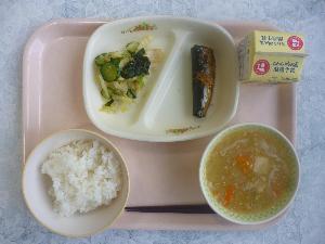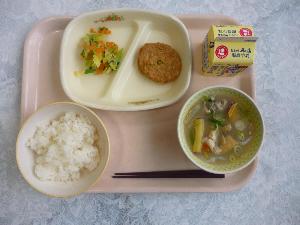 さつまいもご飯、牛乳、いかメンチ、三色ひたし、ゆず塩みぞれ汁