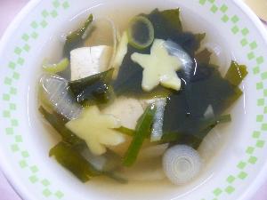 ご飯、牛乳、さけのバター醤油焼き、人参しりしり、茎わかめと卵のスープ