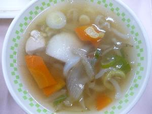 2日目は、『昭和40年』の献立です。このころの給食は、脱脂粉乳から瓶の牛乳に変わったり、パン以外の主食を増やすためにソフト麺が導入されました。ソフト麺の正式名称は、ソフトスパゲッティ式めんで、学校給食向けに開発されました。時間が経っても伸びにくく、ソースや汁と相性がよいことや、衛生的に管理しやすい等、給食の特性に合っていたことから全国に広まりました。