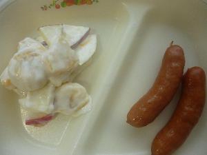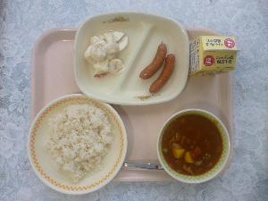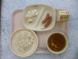 麦ご飯、牛乳、ウインナー、ヨーグルトサラダ、ポークカレー