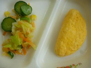ソフト麺、牛乳、チーズオムレツ、フレンチサラダ、ミートソース、ロールパン(小3~)