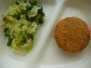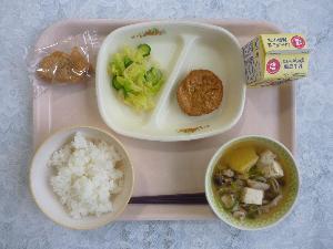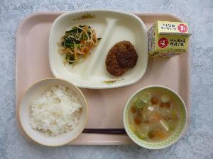 ご飯、牛乳、元気コロッケ、小松菜の切り干しあえ、厚揚げのみそ汁、ヨーグルト