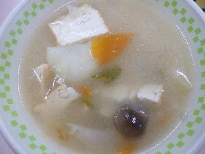 ご飯、牛乳、がんもの含め煮、変わり漬け、けんちん汁、ミニたい焼き